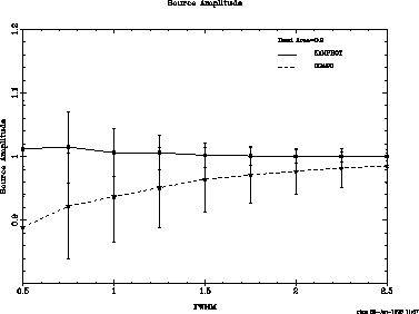 The amplitude bias as a function of seeing for the coadd and KAMPHOT algorithms.