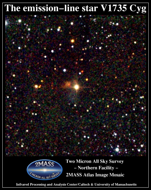 optical emission-line objects. V1318 Cyg, as seen in the 2MASS image, is