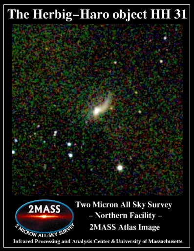 the origin of Herbig-Haro (HH) object 354 (not seen in the 2MASS image), an