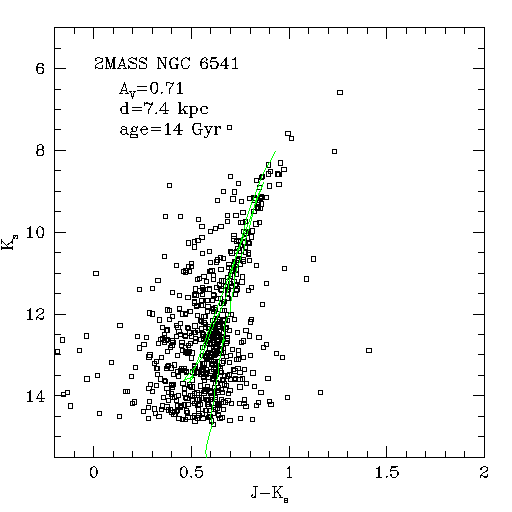 color-magnitude diagram of NGC 6541, with a 14 Gyr low-metallicity