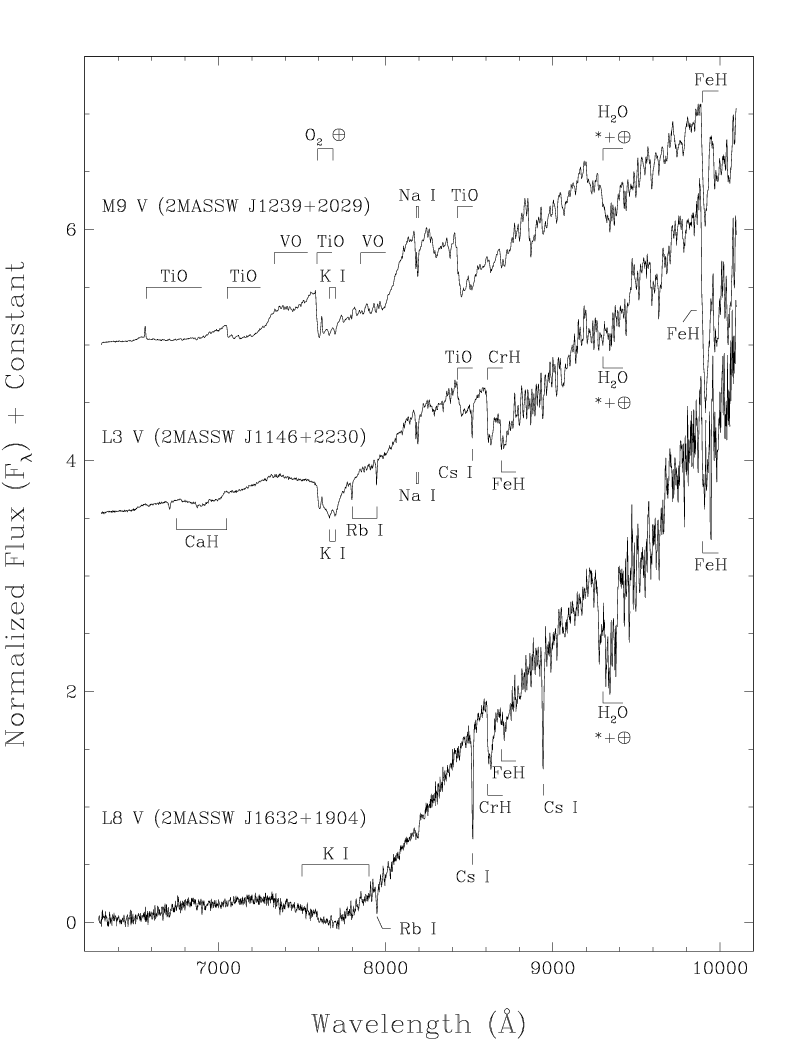 of 5000 Ang. in the L0 dwarf 2MASSJ0746+2000 and the L4 dwarf 2MASSJ0036+1840, allowing the