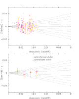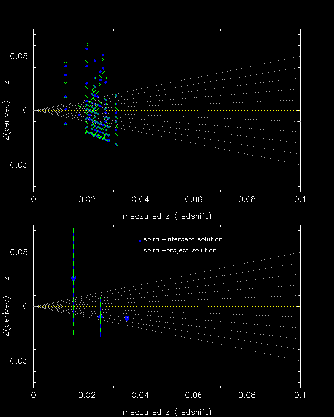 The figures show the known redshift vs. the redshift difference between what is known and what is deduced from the colors and K-correction track.
