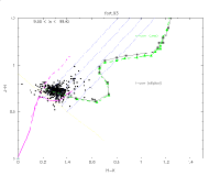 Given the J-H and H-Ks colors for a galaxy, we then deduced the redshift by comparing the colors with a K-correction model. The K-corrections correspond to SAB type galaxies with no evolution (from models Bruzual & Charlot 1993, ApJ, 405, 538, and McLeod & Rieke 1995, ApJ, 454, 611; tables provided by R. Cutri) and K-corrections corresponding to ellipticals with passive evolution (using models of Bruzual & Charlot; tables courtesy of P. Eisenhardt & A. Stanford). We do this comparison in two different ways: