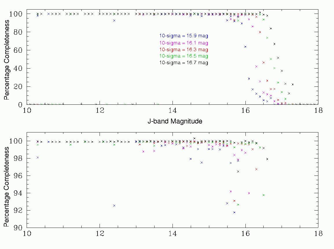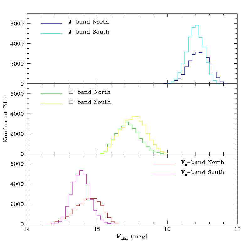 better than 15.9, 15.0, 14.3 mag 50% of coverage better than 16.4, 15.5, 14.8 mag Most sensitive coverage at 16.8, 16.0, 15.3 mag |