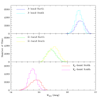 sensitivity in the histogram in Figure 1 -- or 15.9, 15.0, and 14.2 mag