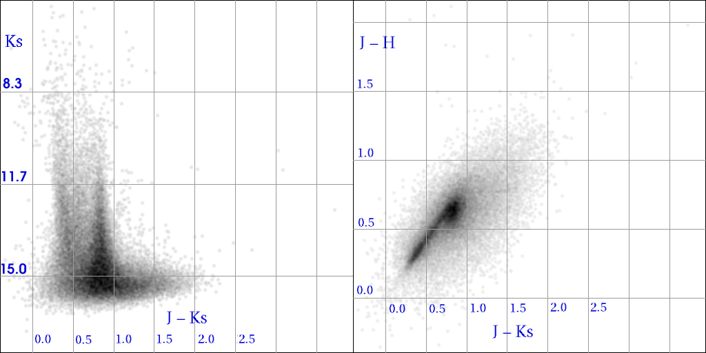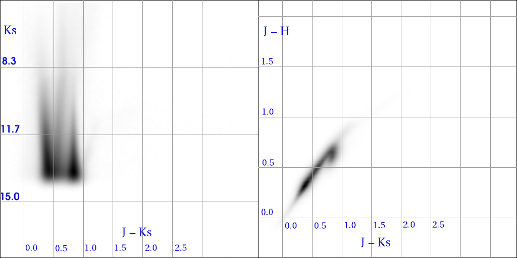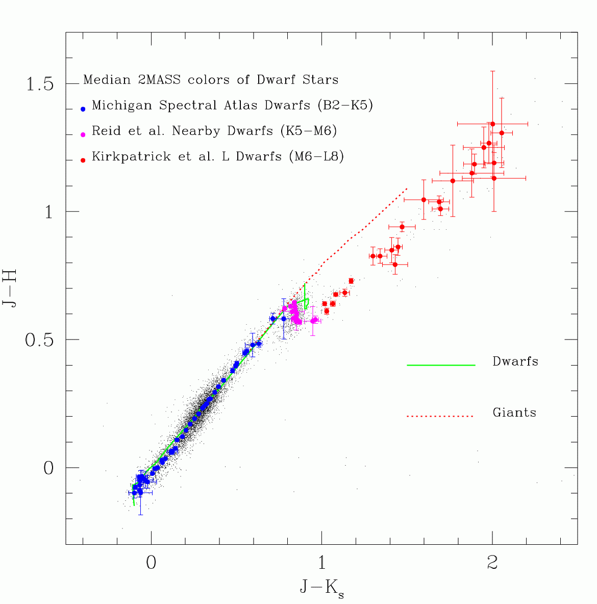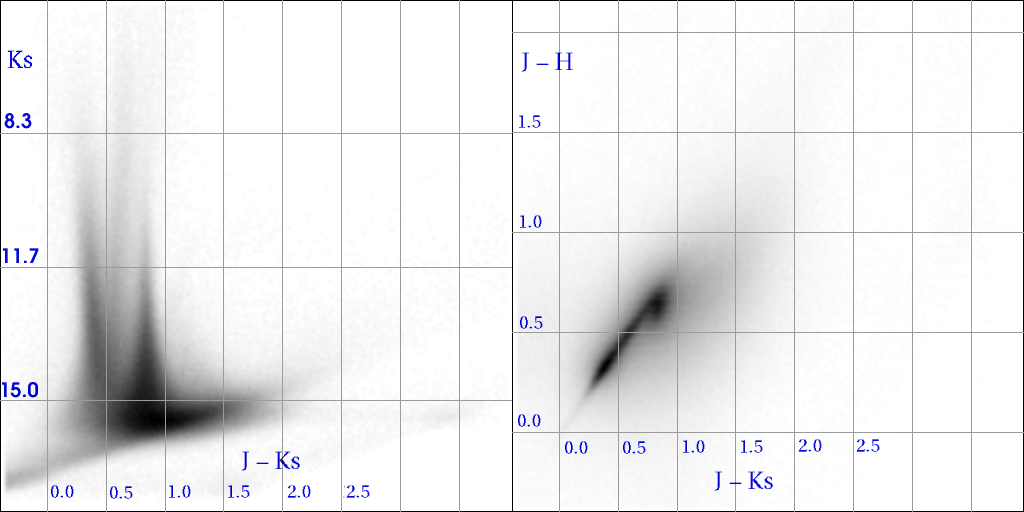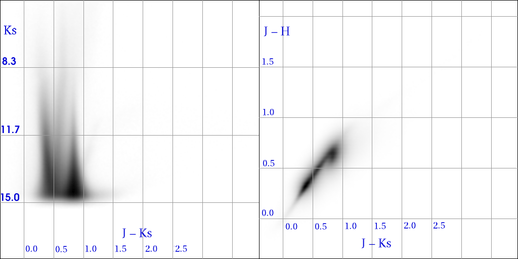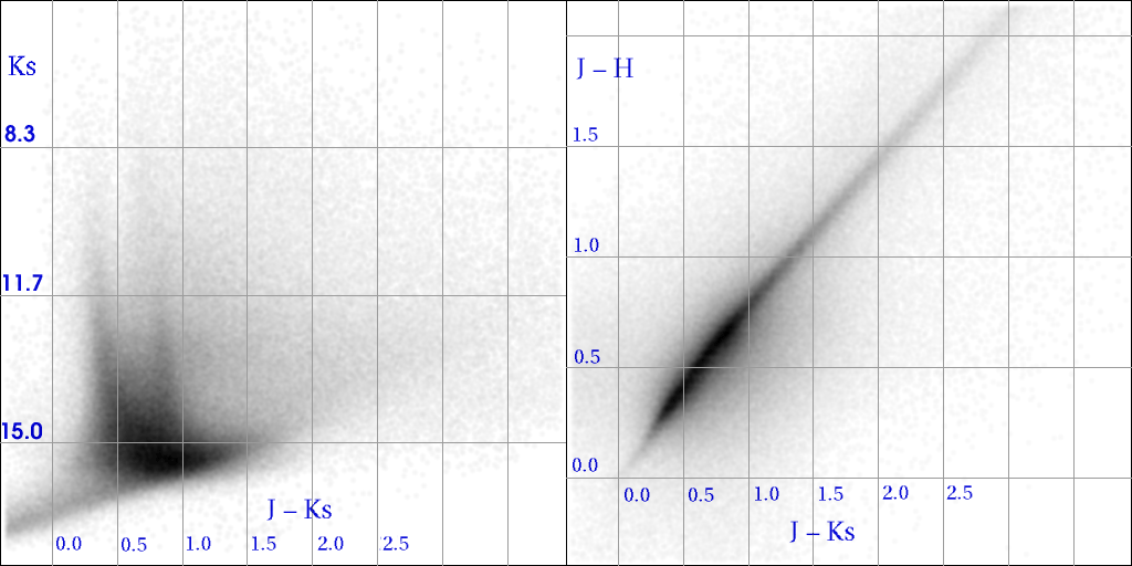 result from a random sampling of 0.1% of the 2MASS Release database.