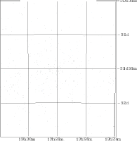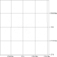 The following figures show the Local Universe as traced by the XSC. Figure 1 shows the Aitoff equal-area projection (binned to 18´ pixels) of the integrated XSC flux for Ks < 14.0 mag (~1.7 mJy). The near-infrared J, H, and Ks bands have been combined to form a three-color composite image of the Local Universe. The image orientation is equatorial, centered on 6h right ascension (roughly corresponding to the Galactic anti-center); see Figure 2 for the equatorial coordinate map. The "red" sources defining the Galactic Plane are mostly Milky Way in origin, both heavily dust reddened as well as being intrinsically red (due to strong emission lines in the Ks-band window). The Galactic anti-center region (center of image) is also graced by the Orion and Taurus molecular cloud systems (Orion located just right and down from the center of the image, Taurus just right and up from the center). The filaments and coherent structures throughout the image are extragalactic superstructures. Figure 3 is a chart showing the orientation and locations of known large scale structures, in equatorial orientation. The figure can be directly compared with the Cornell redshift survey images by M. Haynes. Figure 4, for example, is the sky distribution for galaxies with a redshift < 12,000 km/s (z < 0.04).