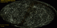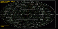 The 2MASS XSC is primarily composed of galaxies, and secondarily of Milky Way objects. Galaxies are detected all across the sky except for regions of the Galactic Plane that are opaque with stars (e.g., Galactic Center in Sagittarius). Galaxies concentrate on several spatial scales, including groups, clusters, and large filamentary superclusters. Milky Way objects are almost exclusively confined to the Galactic Plane, |b| < 3°. See 2MASS XSC Galactic Extended Sources.