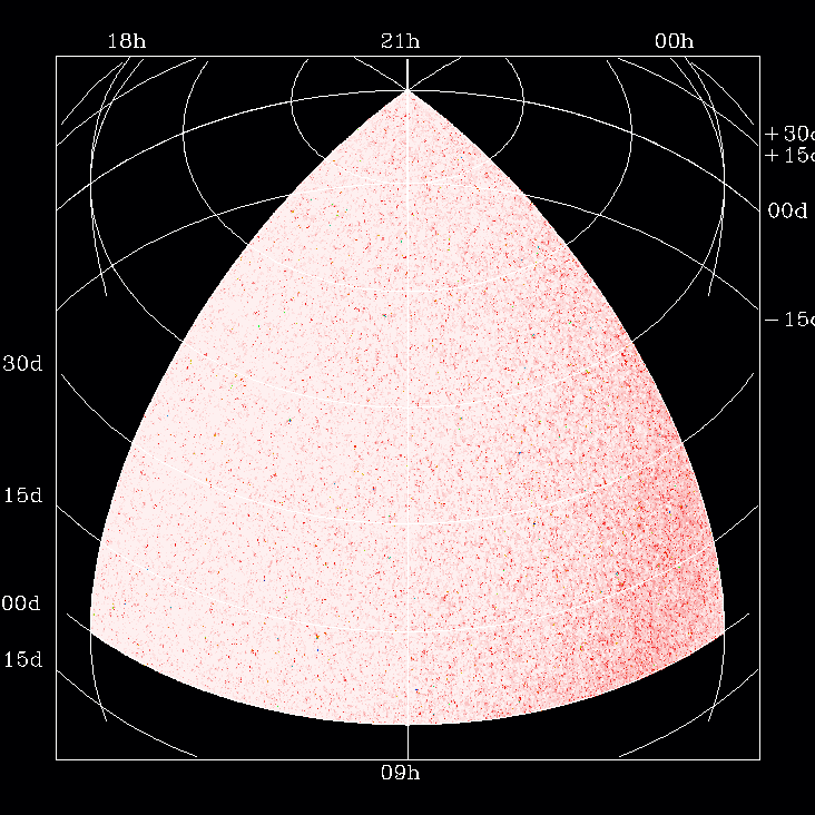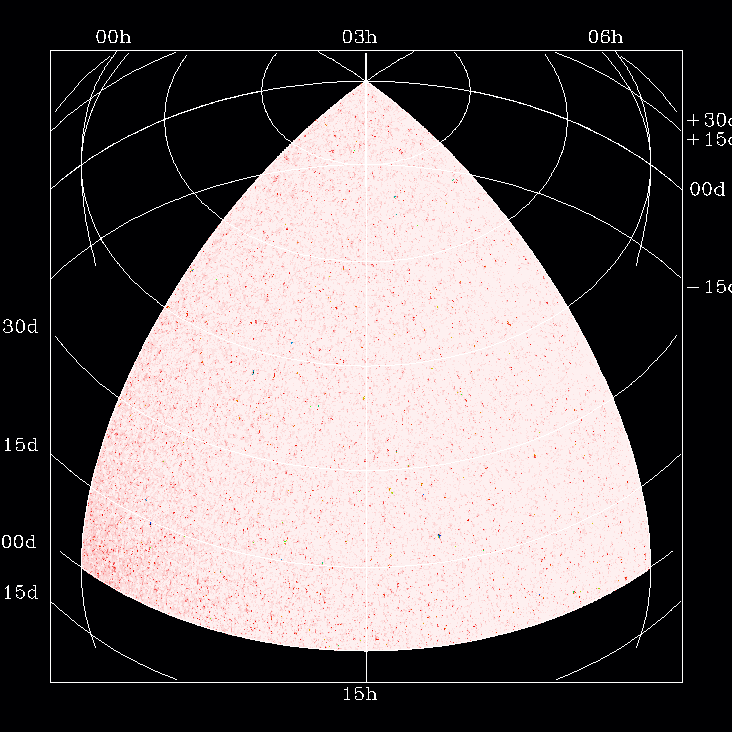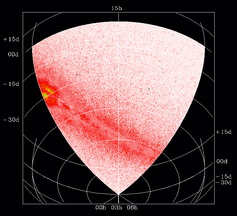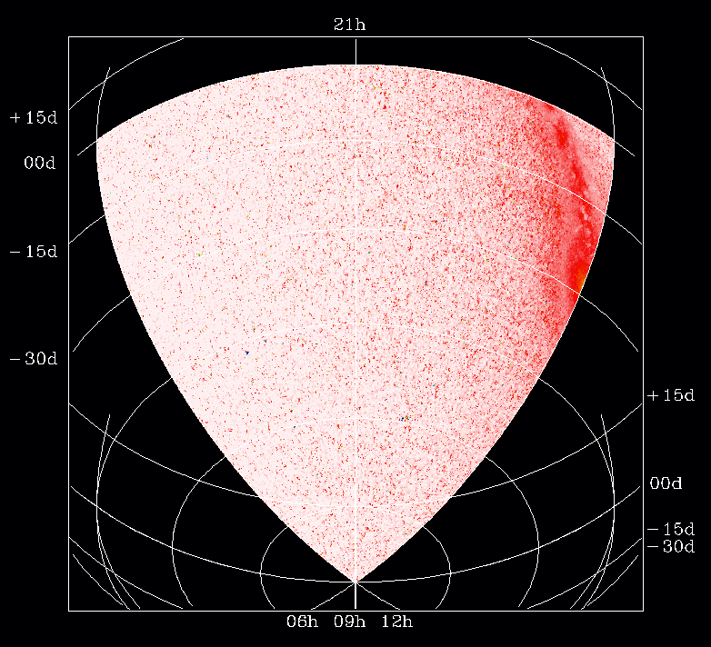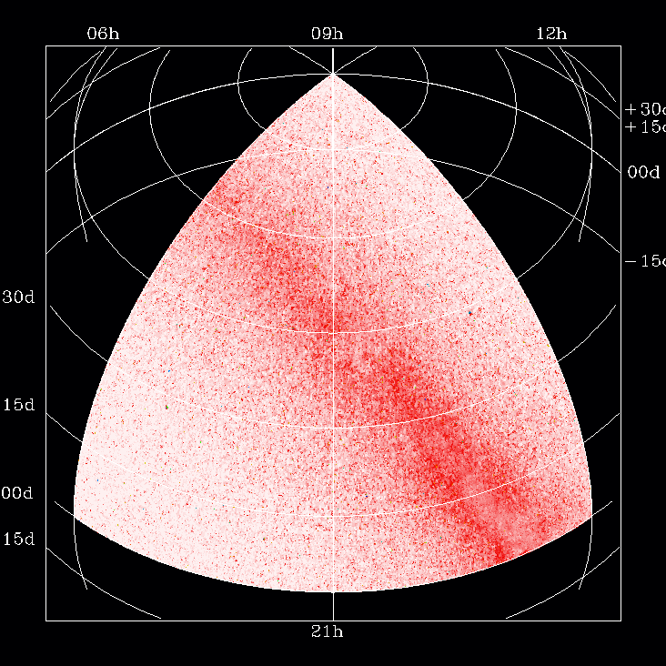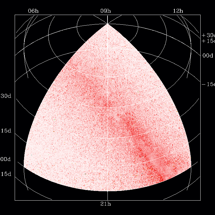 The sky is divided into four 6-hour quadrants per equatorial hemisphere, and each coverage map is generated using a tangent projection (for convenience to the user). A summary of the statistics per quadrant is given in the following table:
