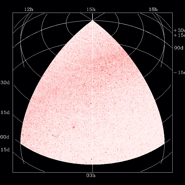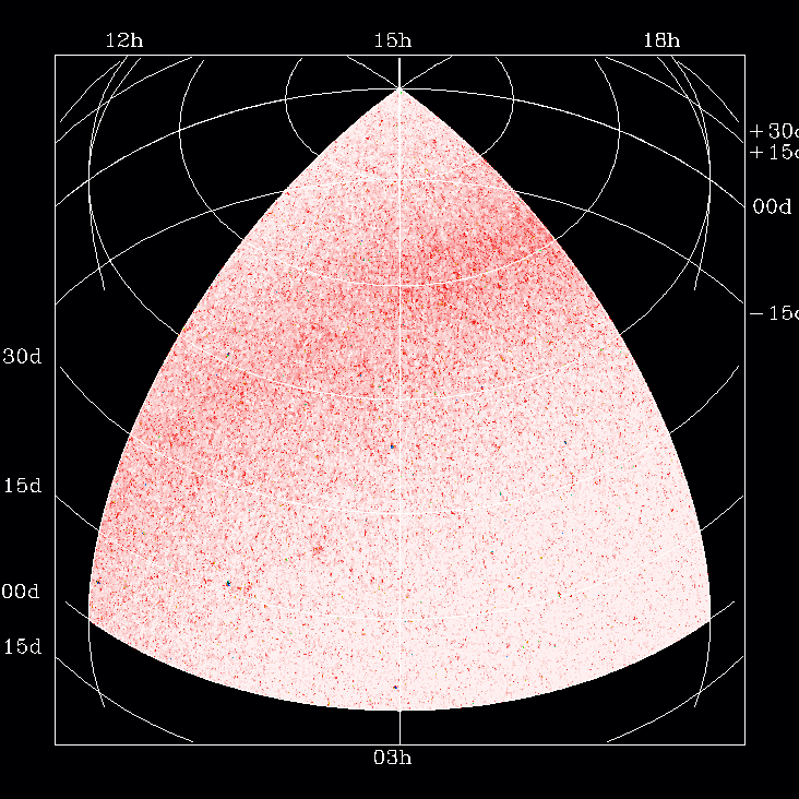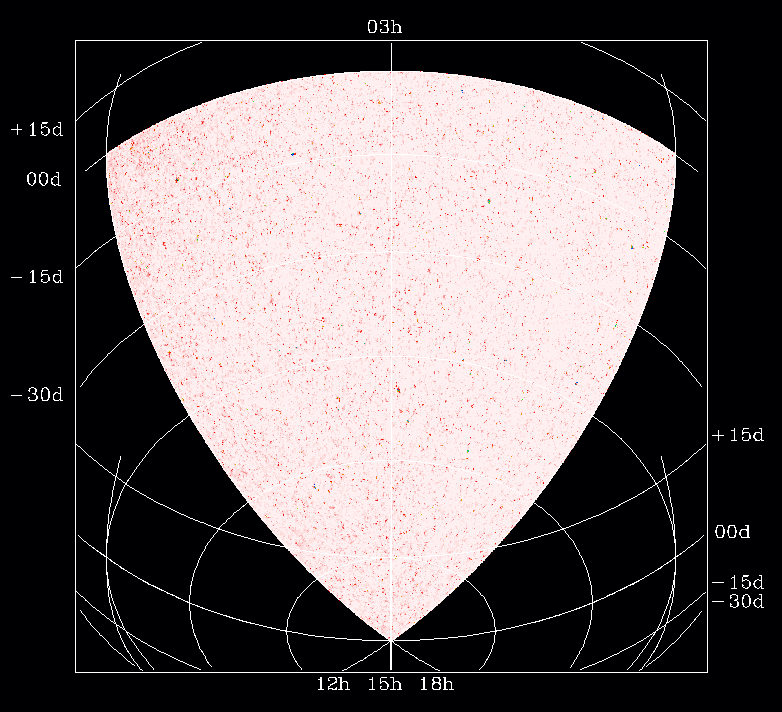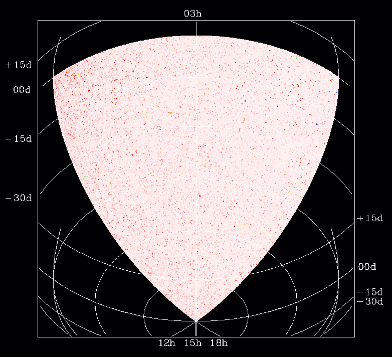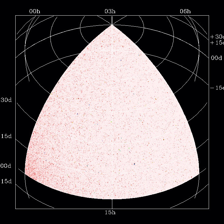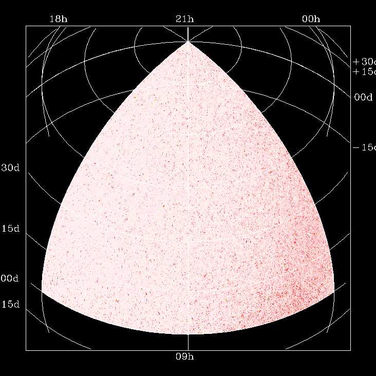 The sky is divided into four 6-hour quadrants per equatorial hemisphere, and each coverage map is generated using a tangent projection (for convenience to the user). A summary of the statistics per quadrant is given in the following table: