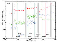 NORTHERN HEMISPHERE DARKS Dates Bnd Notes -------------------------------------------------------------------- a 970000 970830 --- summer shutdown b 970901 971114 JHK work during rain at telescope for several days c 971115 971224 J holiday shutdown d 971225 980411 JH zener diodes added (read1 changes) e 980412 980719 JHK summer shutdown f 980720 980924 JHK Leach test at start of night g 980925 981014 H camera pumped down (only 3 days of darks; no break) h 981015 981022 H Leach replaces GATIR electronics i 981023 981118 J K Leach eprom change (actually before obs on 18th??) j 981119 990427 JH Leach software upgrade k 990428 990612 JH slight warmup of camera l 990613 990720 J K summer shutdown m 990721 991202 JHK H banding problems show in darks? n 991203 000322 H camera pumped down o 000323 000724 K summer shutdown p 000725 020101 JHK end of ops SOUTHERN HEMISPHERE DARKS Dates Bnd Notes -------------------------------------------------------------------- a 970000 990117 --- electronics maintenance b 990116 990226 JHK Leach installed c 990227 990506 JHK Leach eprom upgrade d 990507 020000 JHK end of survey