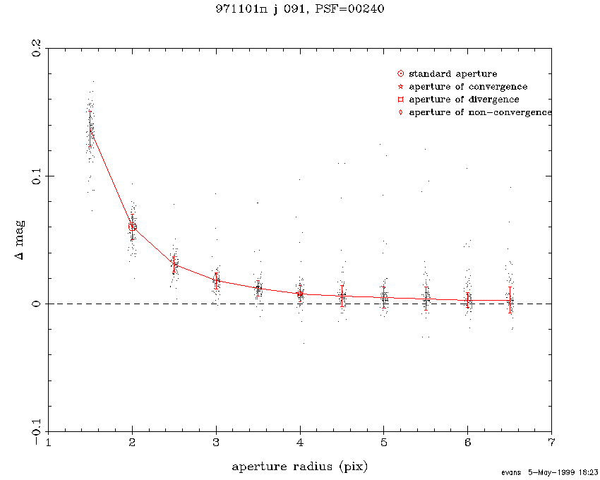 curve-of-growth was determined to converge (open star). The good seeing