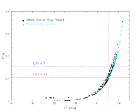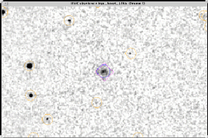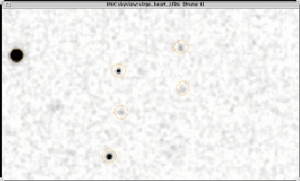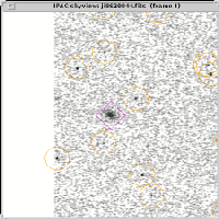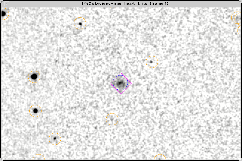 The 2MASS Point Source Catalog (PSC) includes many extragalactic sources, both of the extended and of the compact, or point-like, variety. The Virgo mosaics are full of faint point sources which are undoubtedly galaxies (based on their "soft" surface brightness and "red" colors). Figure 5 shows a small Virgo area with PSC sources indicated by orange circles. Three of the sources are faint galaxies, with integrated J magnitudes much fainter than the XSC limits, but well within the sensitivity limits of the PSC. For a larger view of PSC and XSC sources, view the full-resolution Virgo mosaic panels in IV.5a8.