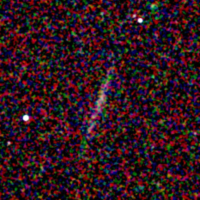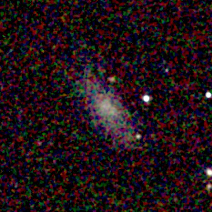 The following figures show some of the largest Virgo galaxies missing from the XSC. The images belong to the 2MASS Large Galaxy Atlas (LGA), and the integrated fluxes come from the LGA. Note that even these "large" examples are low surface brightness. Figure 156 shows NGC 4523, with isophotal size and mags (r, J, H, Ks)= 25.5´´, 13.014±0.049, 12.392±0.074, 12.155±0.086 mag; image size = 4.8´×4.8´. Figure 157 shows NGC 4633, with isophotal size and mags (r, J, H, Ks)=30.8´´, 12.234±0.032, 11.573±0.043, 11.382±0.054 mag; image size = 3.9´×3.9´. Figure 158 shows IC 3074, with isophotal size and mags (r, J, H, Ks)=21.2´´, 13.914±0.091, 13.396±0.121, 12.984±0.160 mag; image size = 3.9´×3.9´.