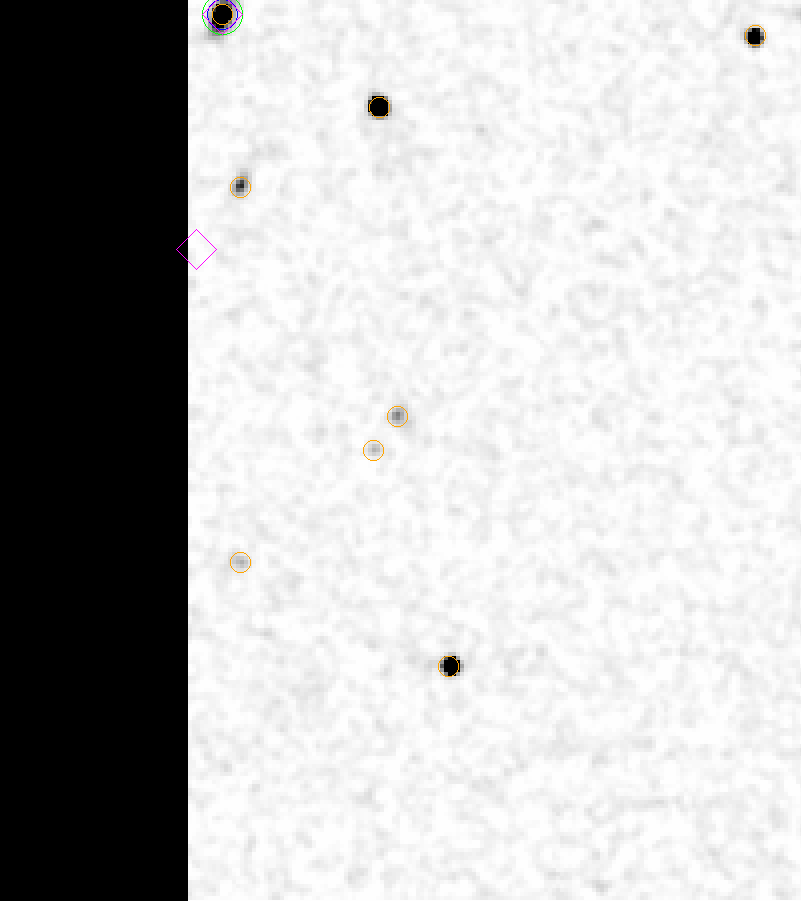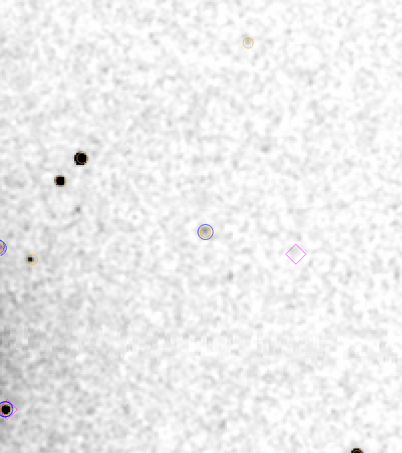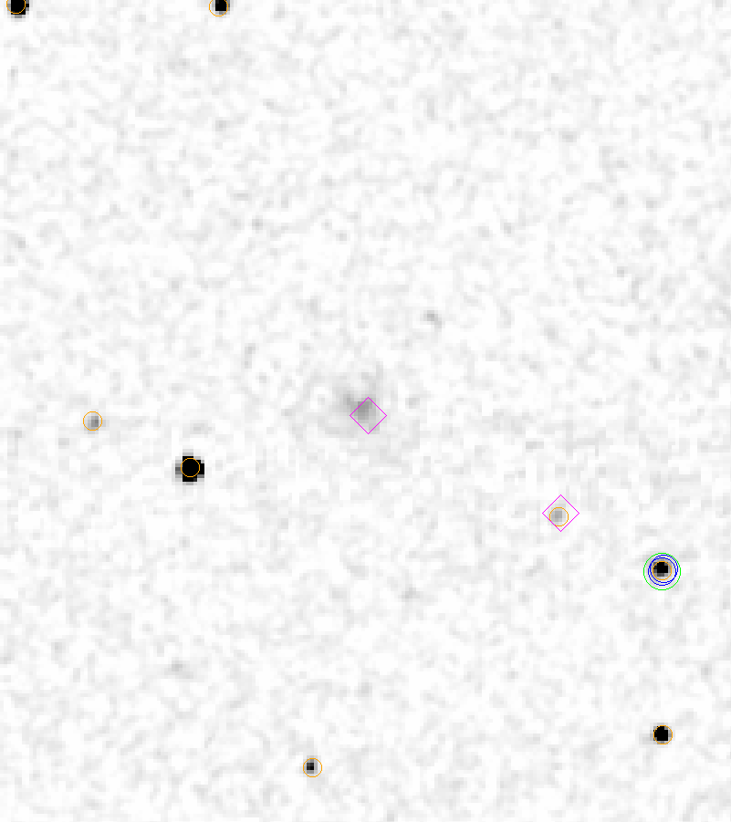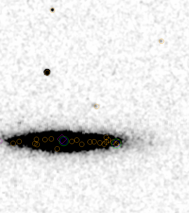 Table 2 presents the sources identified from the Virgo mosaic that do not have an XSC counterpart. The columns for the table are: (ip,jp), panel number, from Table 1 above; (x,y), pixel coordinates; (ra,dec), J2000 equatorial coordinates; radius, circular aperture radius in arcsec; J mag; J-band rms uncertainty; and, "zoomed" image.