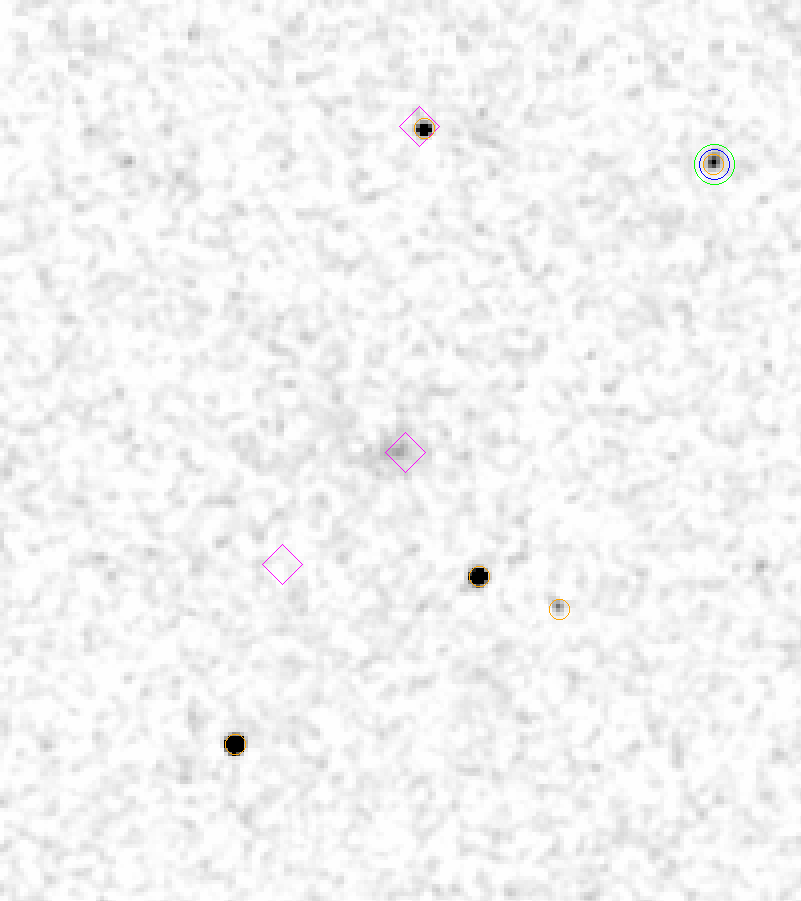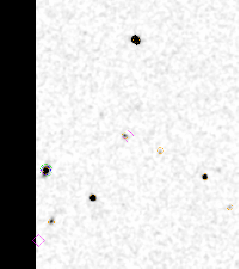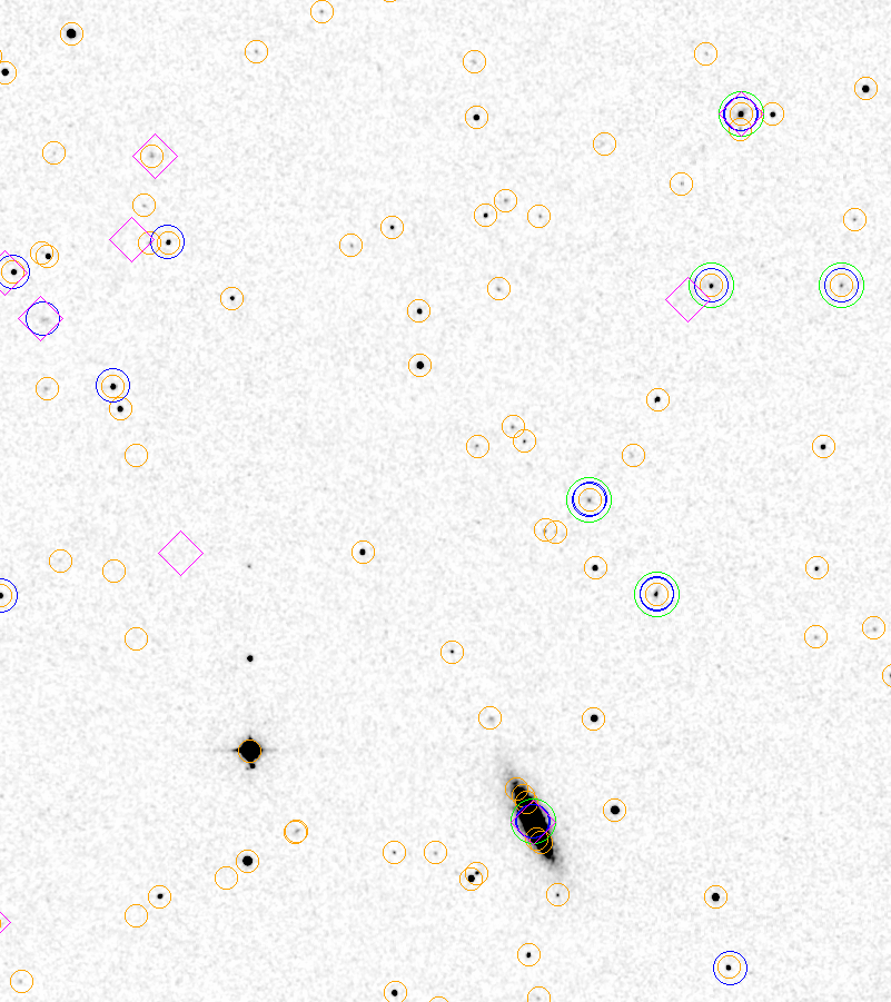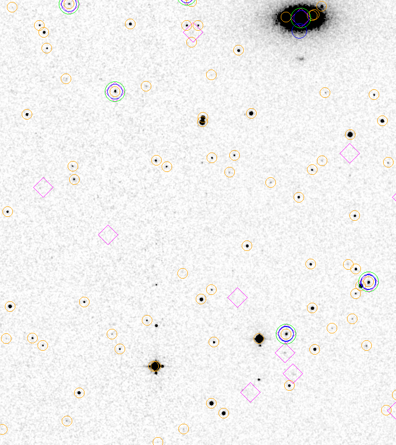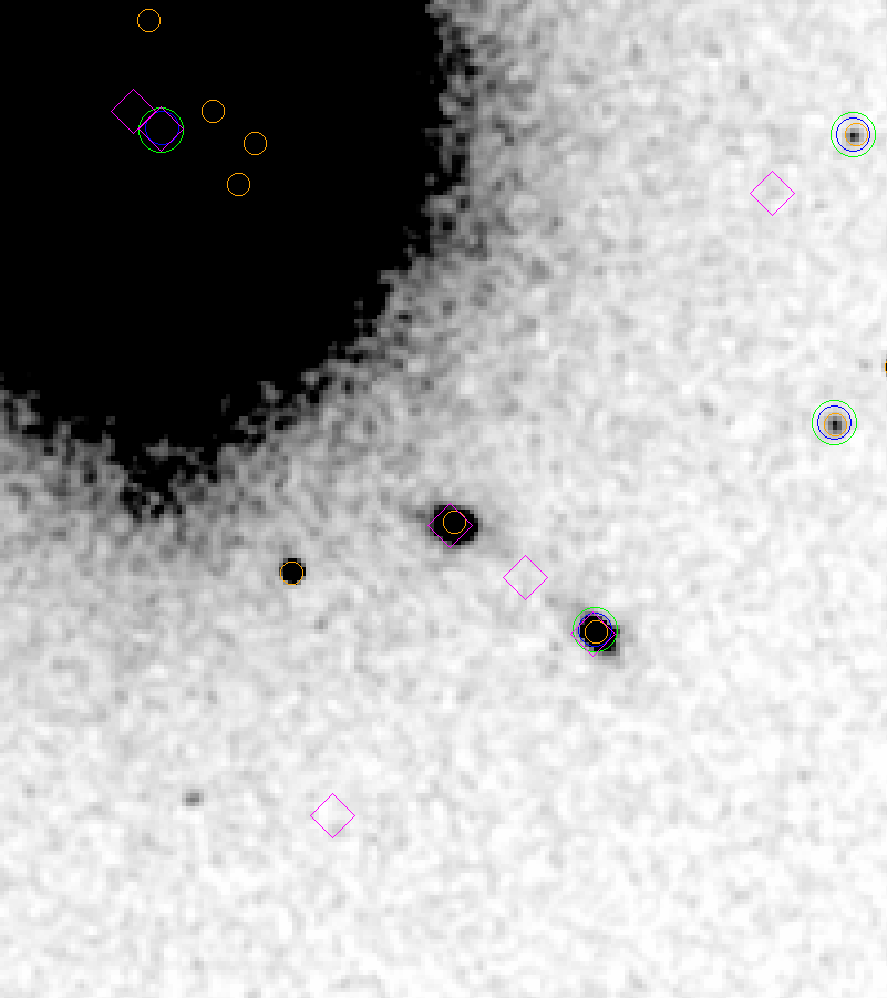 Table 2 presents the sources identified from the Virgo mosaic that do not have an XSC counterpart. The columns for the table are: (ip,jp), panel number, from Table 1 above; (x,y), pixel coordinates; (ra,dec), J2000 equatorial coordinates; radius, circular aperture radius in arcsec; J mag; J-band rms uncertainty; and, "zoomed" image.