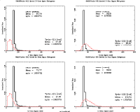 Before proceeding into a discussion of variations with magnitude, it is important to note that the magnitude range of Tycho-2(2) matches is shifted fainter than that of the Tycho-2(1) matches, as can be seen in Figure 18. This shift is reflected in the figures to follow. Figure 19 shows mean cross-scan (upper panels) and in-scan (lower panels) position differences as a function of Ks magnitude. As before, northern data are presented in the left panels and southern in the right. Tycho-2(1) differences are plotted in solid black and cover the range Ks = 2.0 - 11.5 mag. Tycho-2(2) differences are plotted in light red and cover the range Ks = 4.5 - 12.5 mag. The primary result from these figures is that there are systematic errors for sources brighter than Ks=4 mag, growing in amplitude to as large as 50 mas by Ks=2.0 mag. This is true in both hemispheres and scan directions, although in-scan error growth is somewhat less.
