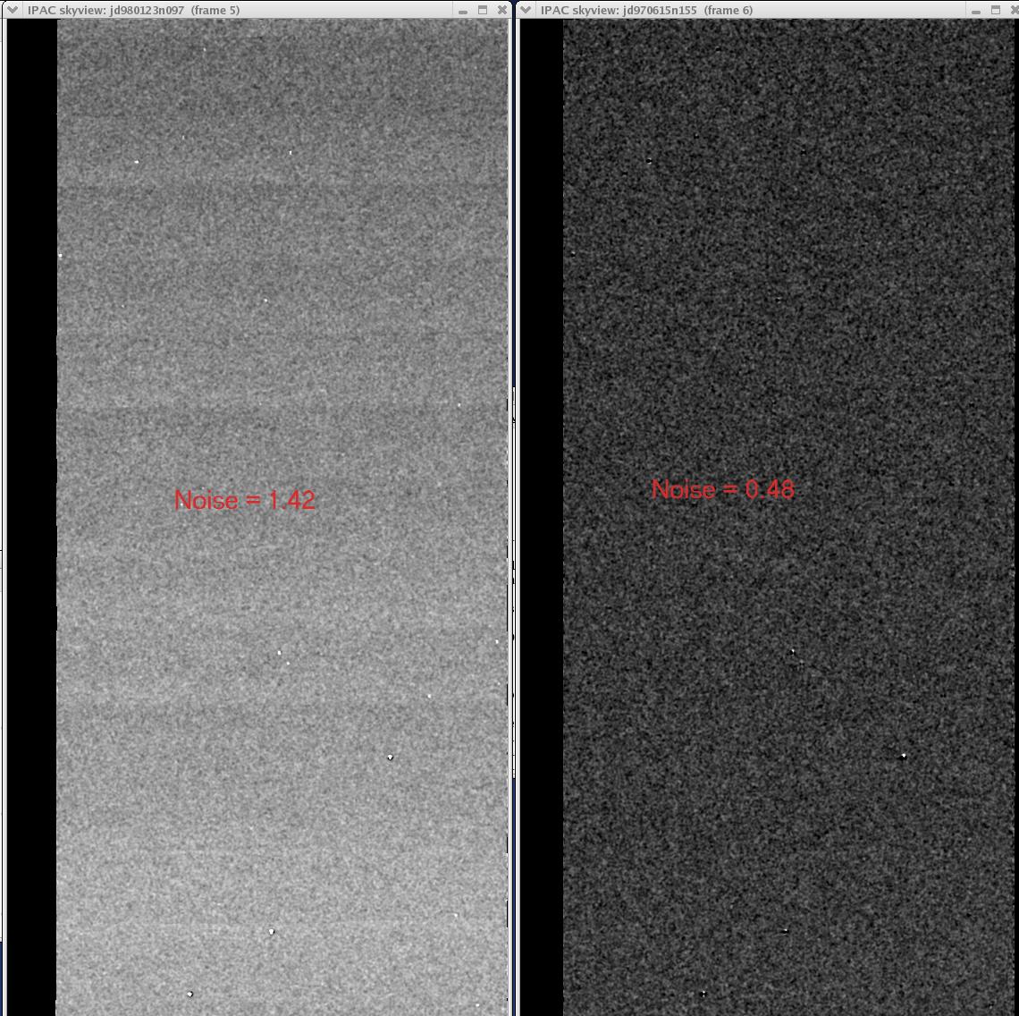 To prepare for their eventual combination, a special set of spatially-registered calibration scan images were produced during final 2MASS pipeline data reduction. Unlike the standard calibration Atlas Images, generated for each scan, the special images consisted of single 540´´ × 3600´´ images in each band that were mapped onto a common, predefined pixel grid for each calibration field. [Mention pixel scale - 1"/pix same for all three bands] Aside from their size and the spatial registration, the special image were constructed using the same flux preserving interpolation kernel and pixel rejection that were used for the normal Atlas Images (see IV.3.ii).