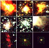 row, the H-band; and, bottom row, the Ks-band images. Each image is