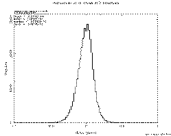 By analyzing chi-squares for the overlap differences, uncertainties have been adjusted to reflect the problem areas. The same technique described previously in Position Uncertainty Adjustments for 971116n was used with a couple of exceptions. Variance factors were allowed to go down to 0.1, and chi-squares were not forced down to one by upping the sigmas on the last iteration. A floor of 0.1 asec was, however, applied to the sigmas in both directions at the end. Figure 10 histograms the resulting cross-scan overlap chi-squares for the entire release, and Figure 11 presents the in-scan chi-squares. The distributions are rather unusual in that the frequency goes back up around one and then drops off almost completely by 1.5. This is presumably due to the algorithm trying to drive them to one. For this early release it was intended that the sigmas be somewhat conservative and these figures demonstrate that they are.