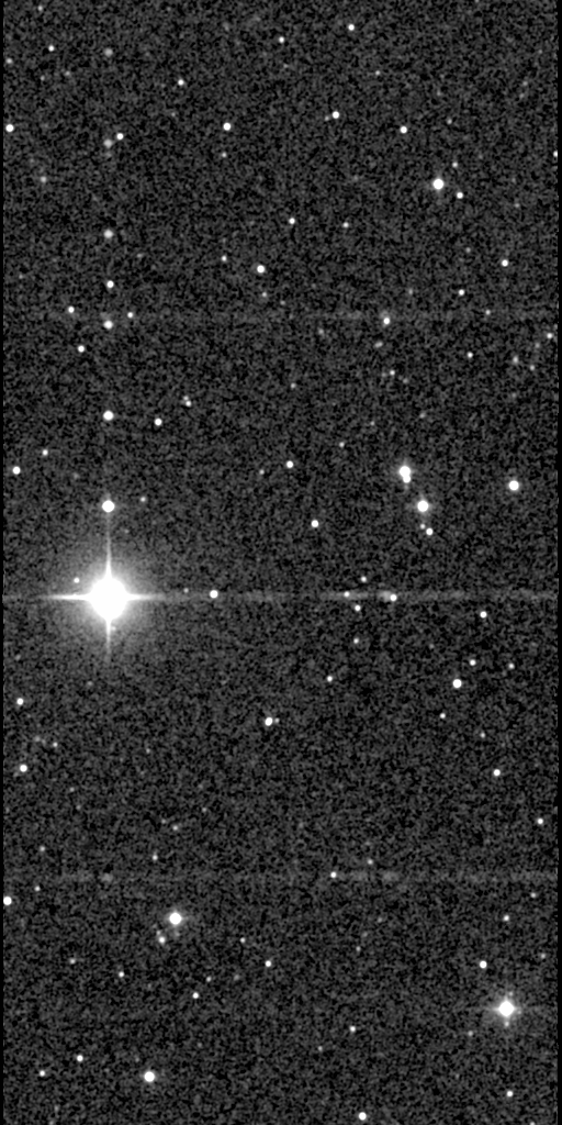 Horizontal "stripe" artifacts extend in the east-west direction at the declination of very bright stars, as well as at 256" north and south of the stars position. They extend the width of a scan, and they are probably some form of electronic residual of the bright star. These stripes are much fainter than diffraction spikes.