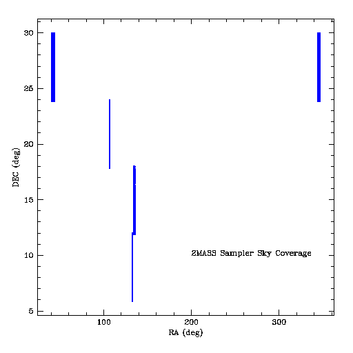 The sky coverage of the Sampler in equatorial coordinates is shown in