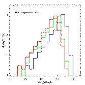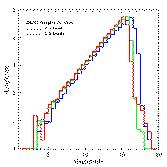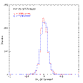 Finally, the distribution of position residuals for 1204 ACT stars observed on 971116n are shown in Figure 8. Red lines show the distribution of the difference between catalog and positionally-reconstructed RA, and blue lines show the DEC differences (see the section on 2MASS positional reconstruction below). The 1-sigma values for each distribution are ~0.1".
