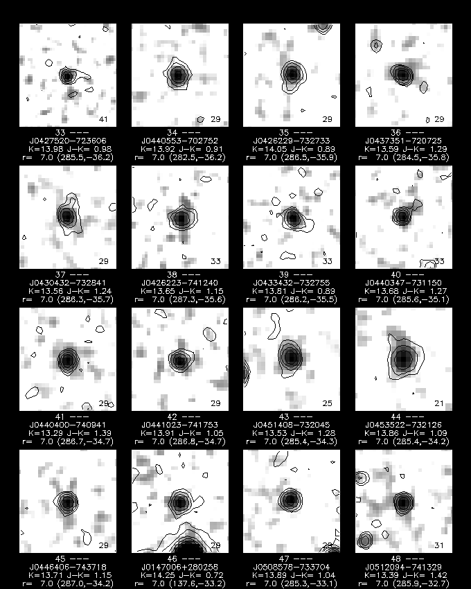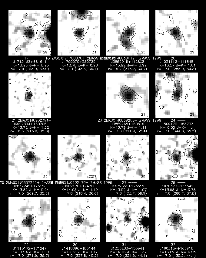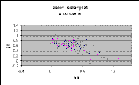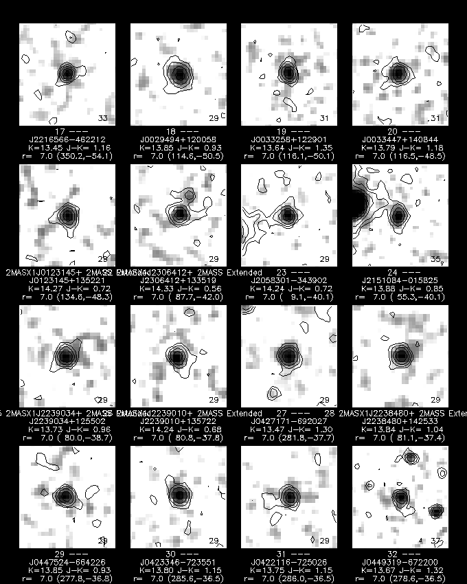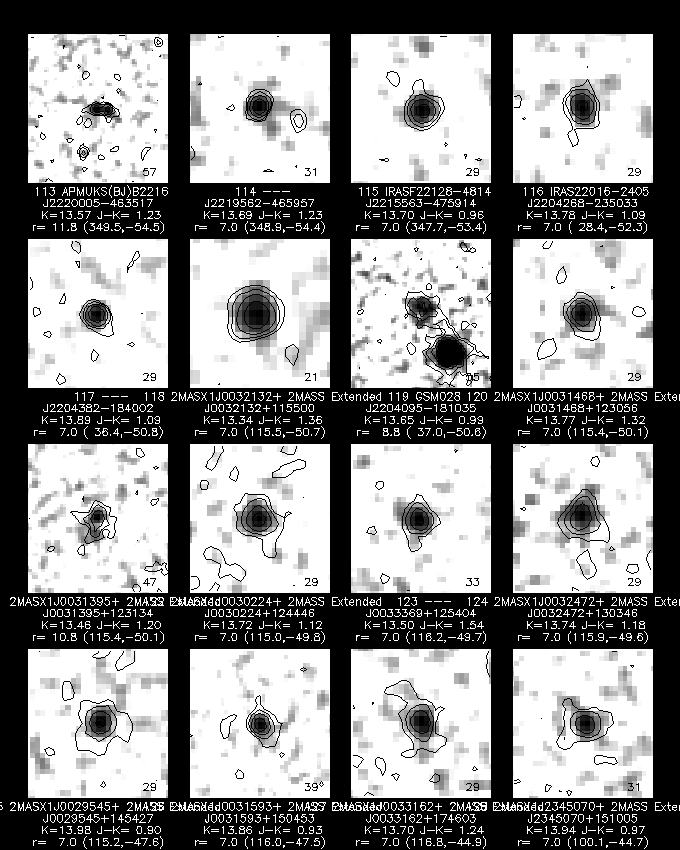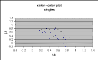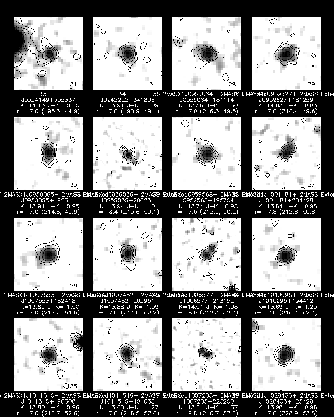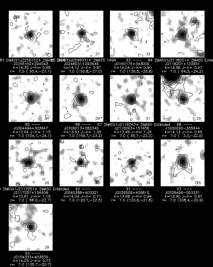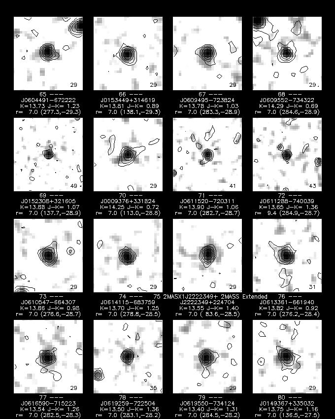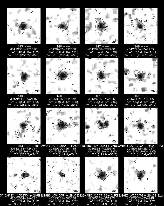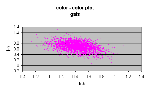 The color-color plot for galaxies, singles, and unknowns, shown in Figures 8, 9, and 10, closely resemble each other, due to the color selection used to assign the "G" score. Nonetheless, it is noticeable that the singles include relatively more quite blue sources (J-H < 0.4) than are seen in the galaxy and unknown plots.
