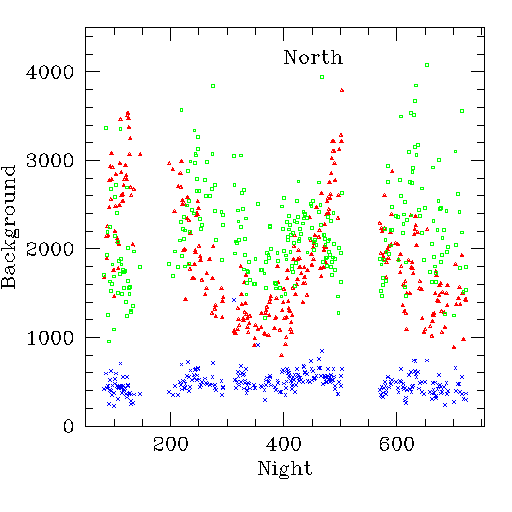 Figure 1 shows the strong seasonal dependence of the Ks backgrounds at the Mt. Hopkins facility. The Ks background is dominated by thermal emission. The gaps of Night 154-187 and 507-565 are due shutdowns during the Arizona monsoon season. The H backgrounds are dominated by airglow (OH) emission. They show considerably more night to night variation. Variations within a night can be more than a factor of two at H band.