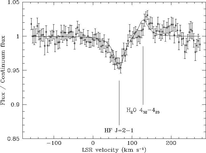 "Because the Earth's atmosphere is completely opaque to far-infrared radiation, the observations that we carried out are possible only from space," said Professor David Neufeld of the Department of Physics and Astronomy, Johns Hopkins University, Baltimore, leader of the team that reported the finding. "The ISO satellite has opened up an exciting new window on the universe by allowing us to observe at far-infrared wavelengths." The characteristic wavelength at which hydrogen fluoride molecules absorb radiation is approximately one eighth of a millimetre, much larger than the wavelength of visible light but much smaller than the wavelengths typically used for radio and television communications.