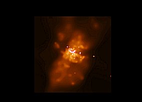 diffuse X-ray light is due to extremely hot gas flowing out of the galaxy.