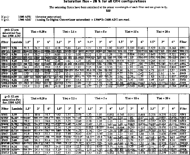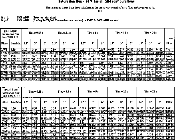 in Table 1 for the SW detector and in Table 2 for the LW detector.