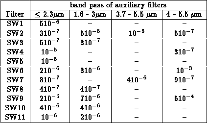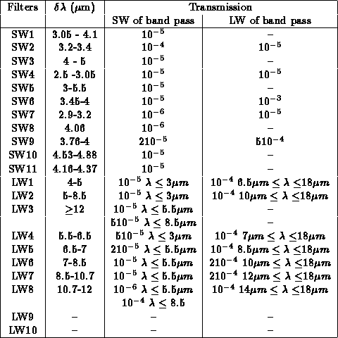 Table: Summary of blocking of the ISOCAM filters
