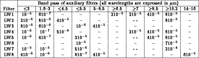 Table: Blocking of the LW-Channel filters
