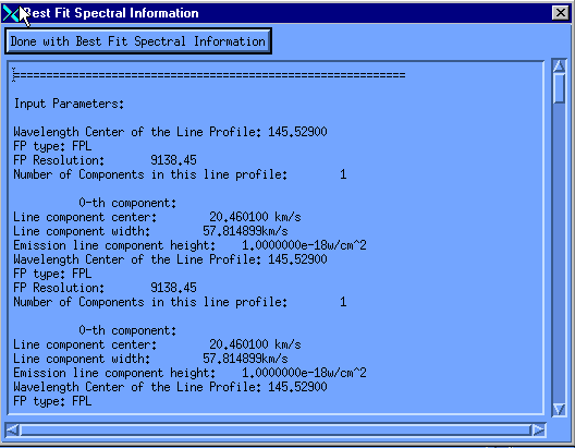 displayed in a pop up window (Best Fit Spectral Information), so that