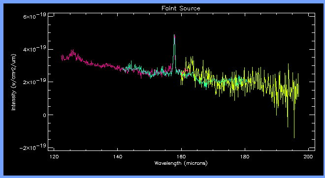 We have just one special recommendation for you, when you are dealing with faint sources. Be careful that the drift you will fit to your data does not cross 0. If this happens, a portion of your data will be divided by very small numbers and the calibrated spectrum will contain points with enormous flux values (both positive and negative). When the source is faint, put a lot of care in selecting the highest signal portions of your grating scans to estimate the responsivity drift. When fitting trends in an observation which is a raster map, remember what we said above. Please note that this problem will affect OLP Version 8 data.