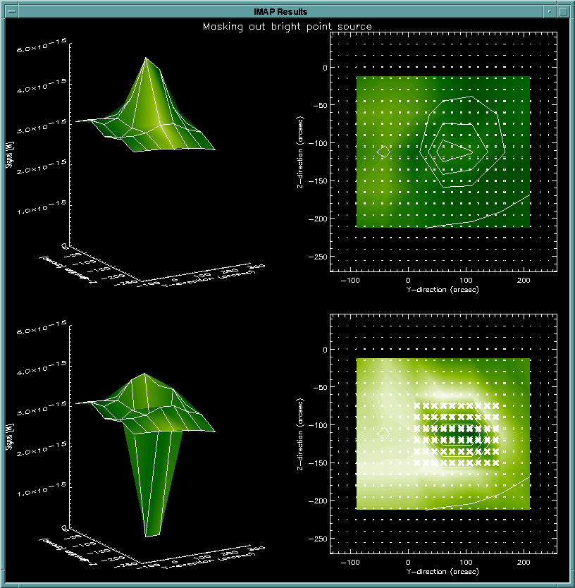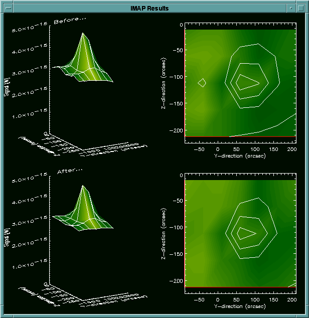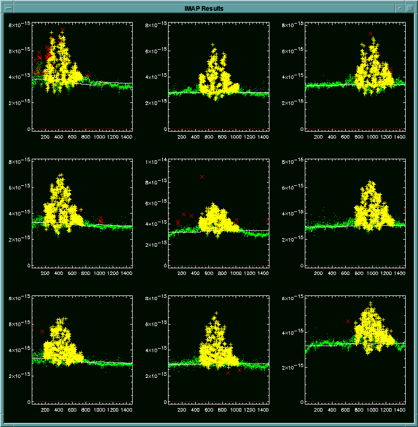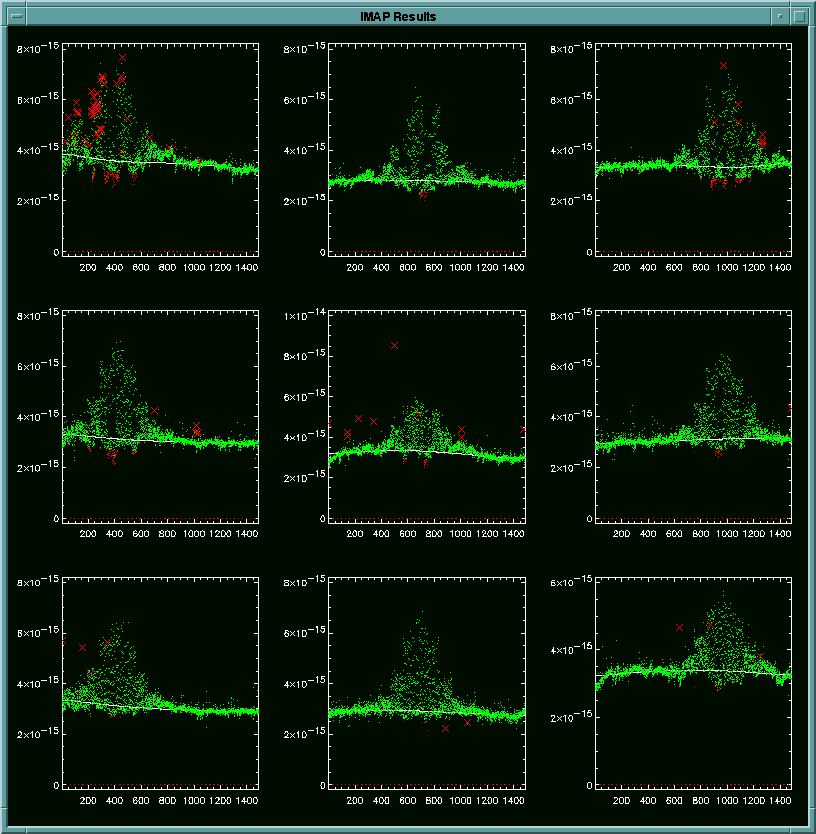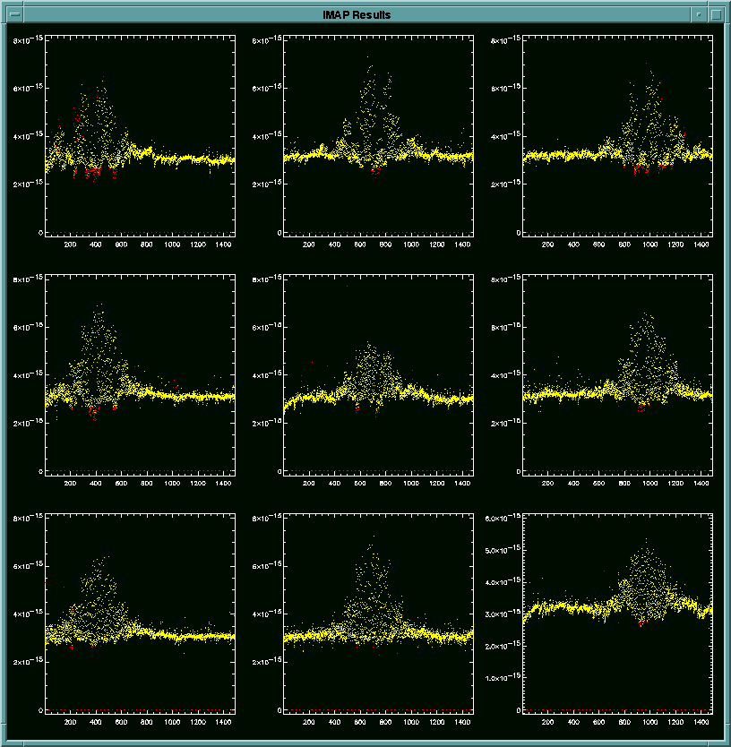 IDL> imap,'filename'The imap.pro displays several images at appropriate times to aid the user visually. In addition, five of these displays, one from each of the major sections of program, are saved to imap_result.ps file, so that the user can produce hardcopies easily.