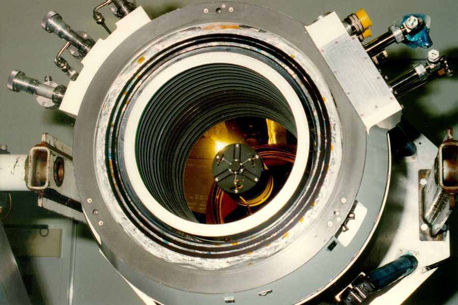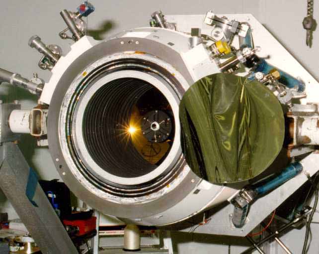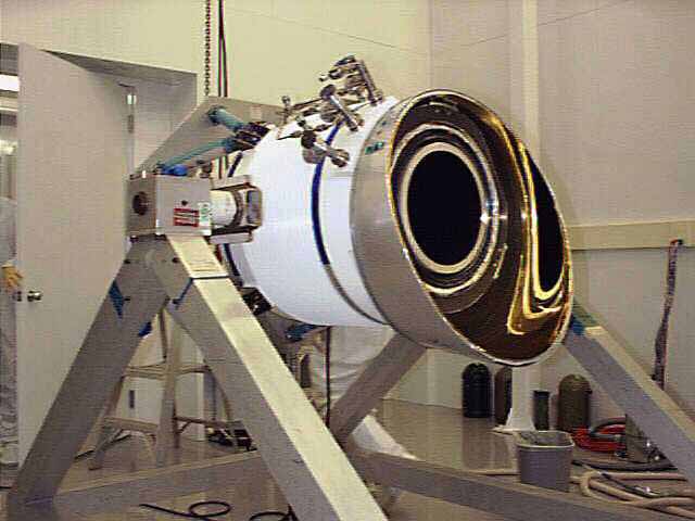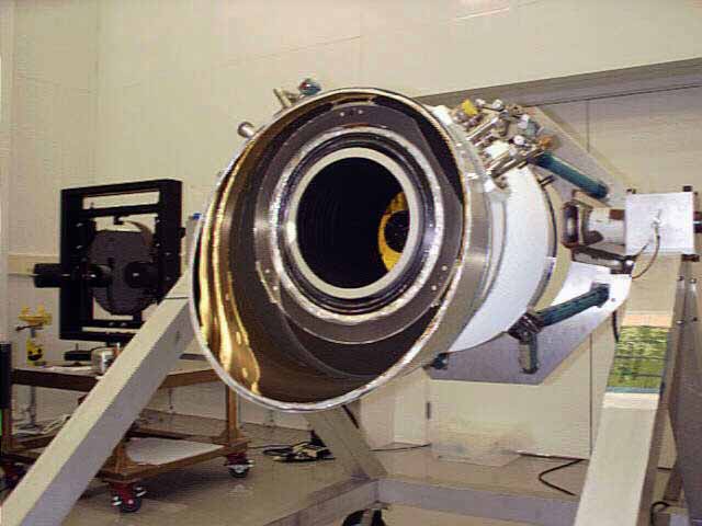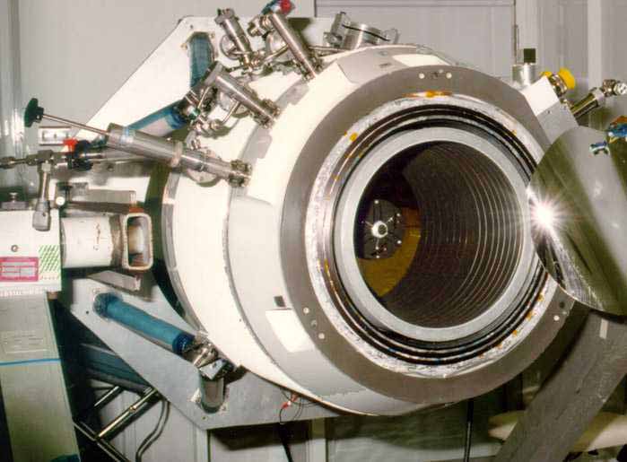 These photographs were taken in May 1998. The WIRE telescope can be seen inside the cryostat assembly
